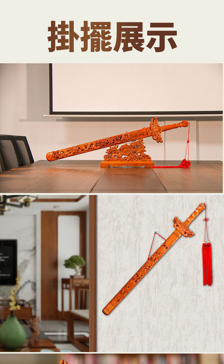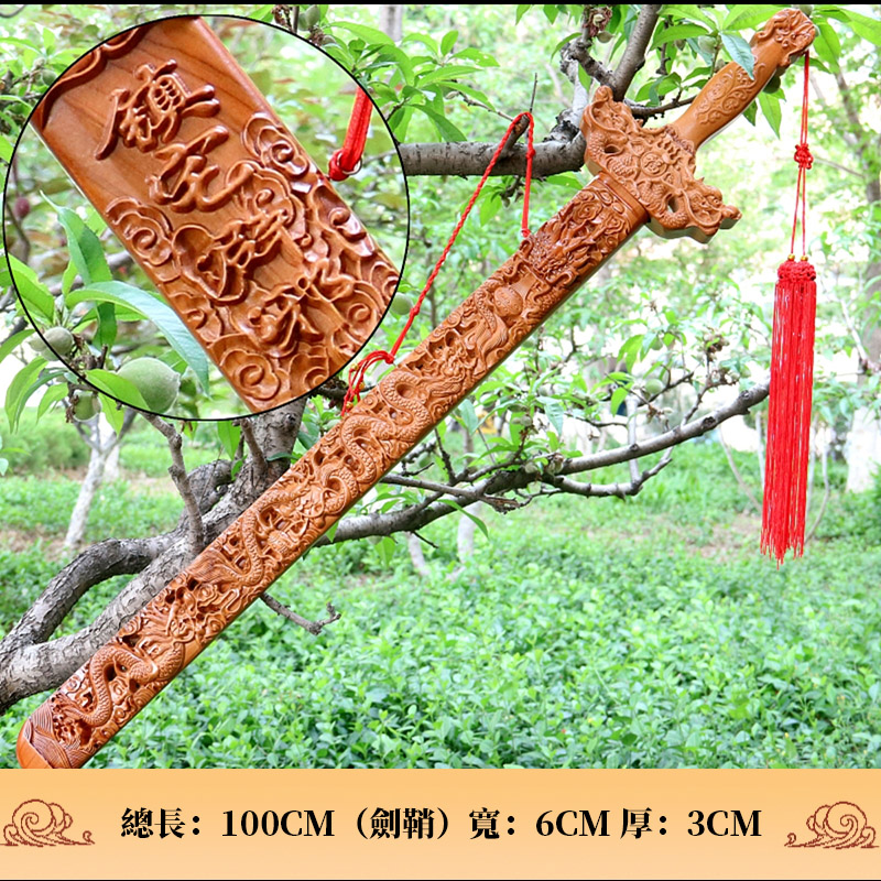 成品桃木劍通體浮雕龍紋