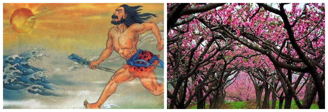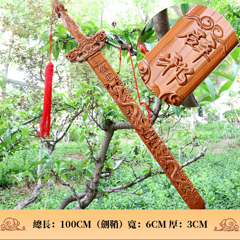據《山海經》記載:夸父逐日一直追趕到太陽落下的地方,他幹到口渴想喝水,在黃河、渭水的水不夠喝之後又去了北方的大湖喝水,還沒到大湖就半路渴死,遺棄的手杖,化成桃林。在傳統習俗中,天然桃木劍也被認為有鎮宅、納福、辟邪、招財等作用。桃者,为五木之精,亦称仙木!